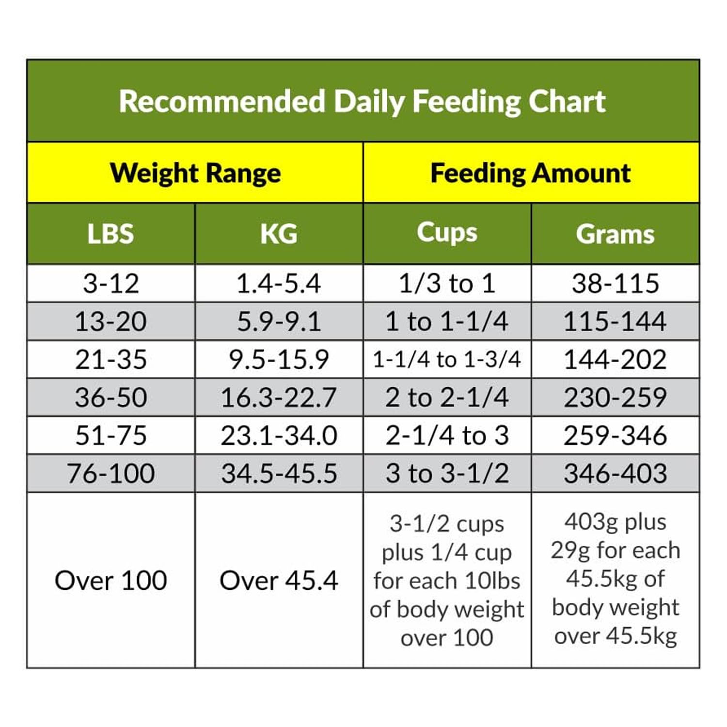 Pet Food Rations at a glance: